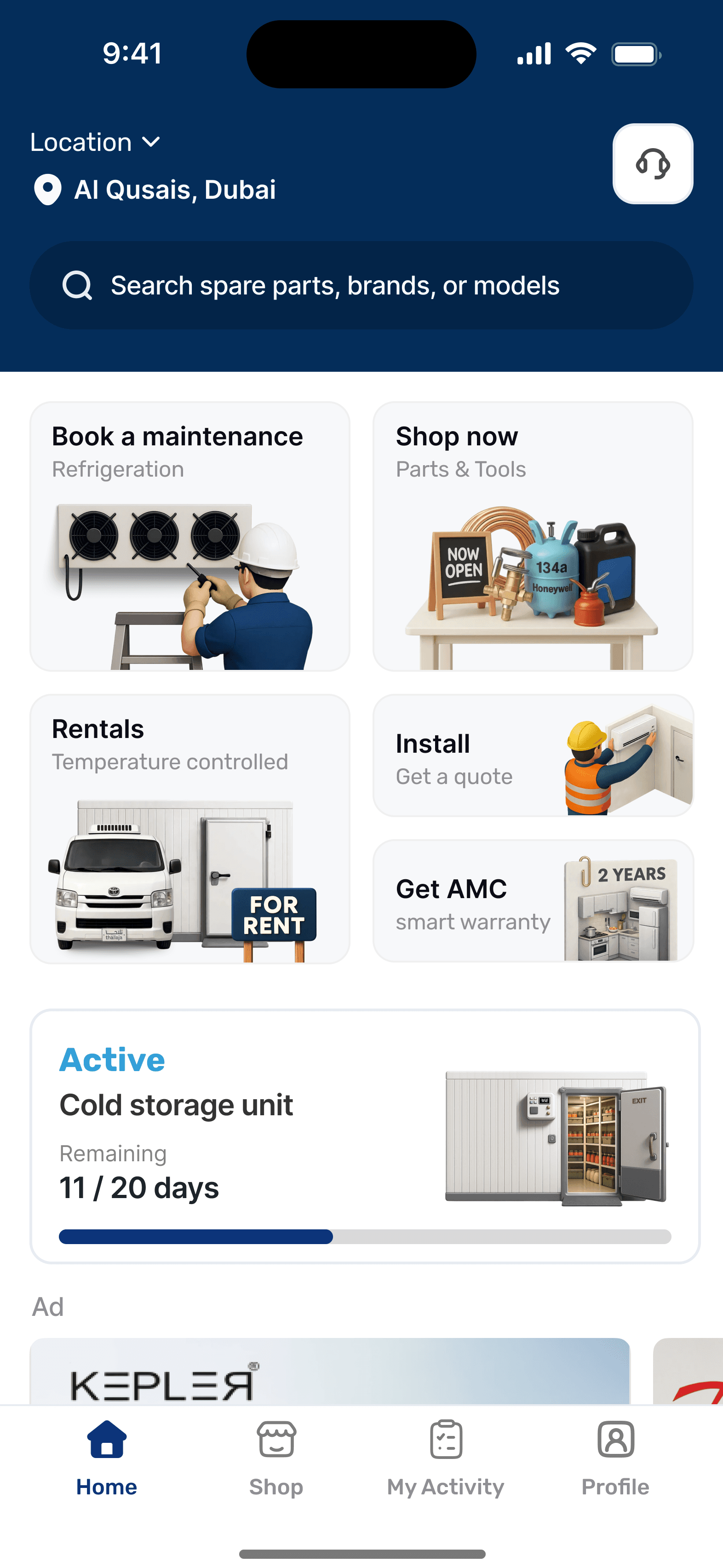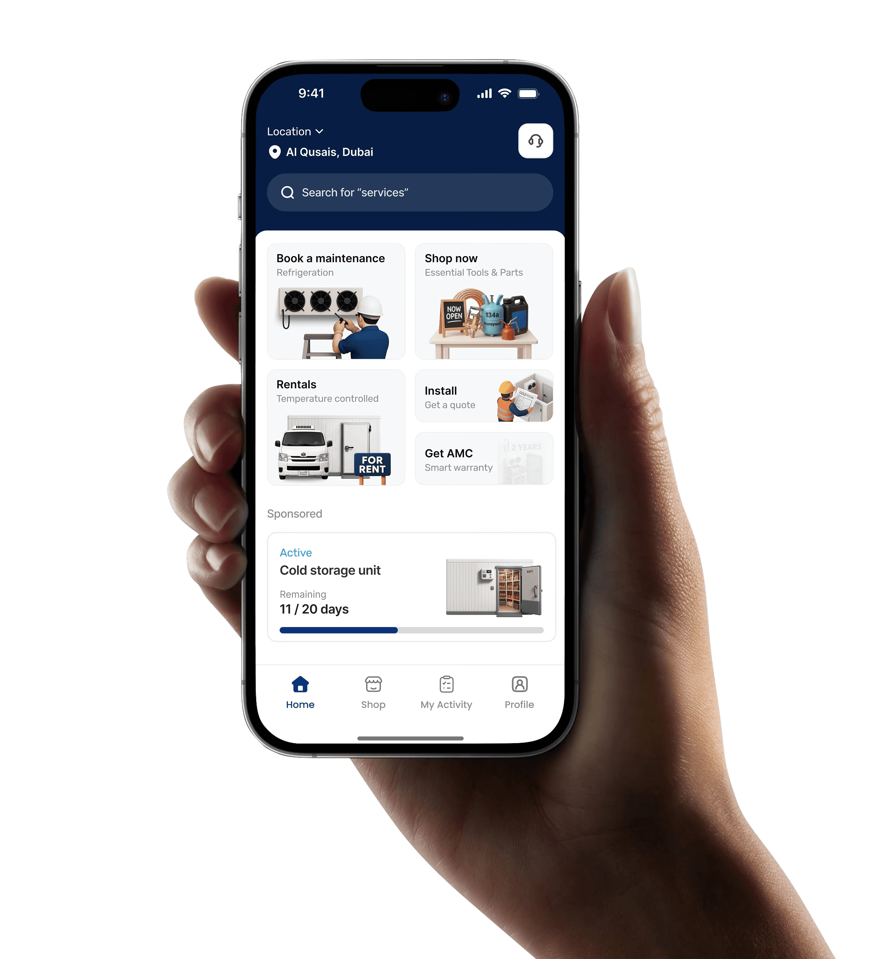 The complete refrigeration and AC ecosystem parts, rentals, maintenance, installation, and AMC unified in one smart app.